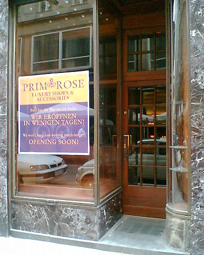 Gleich in der Nähe habe ich am Wildpretmarkt ein neues Schuhgeschäft entdeckt: klein, viel Glas, trotzdem wenig Ware zu sehen, diese u.a. von Maloles und Louboutin. Namen, die eigentlich auf einen gewissen Anspruch schliessen lassen.
