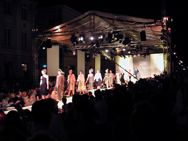Zu feinem House-Mix zeigten polnische Top-Modells elegante Seidenkleider und -Complets für die Dame sowie klassisch-italienische Sommer-Looks für den Herren. Die neureiche Warschauer Hautevolee & ihre Zaungäste zeigten sich erfreut und so shakte die Fashion-Crowd bis weit nach Mitternacht auf der Straße – natürlich getrennt durch eine dicke rote Kordel und jede Menge Security-Personal.