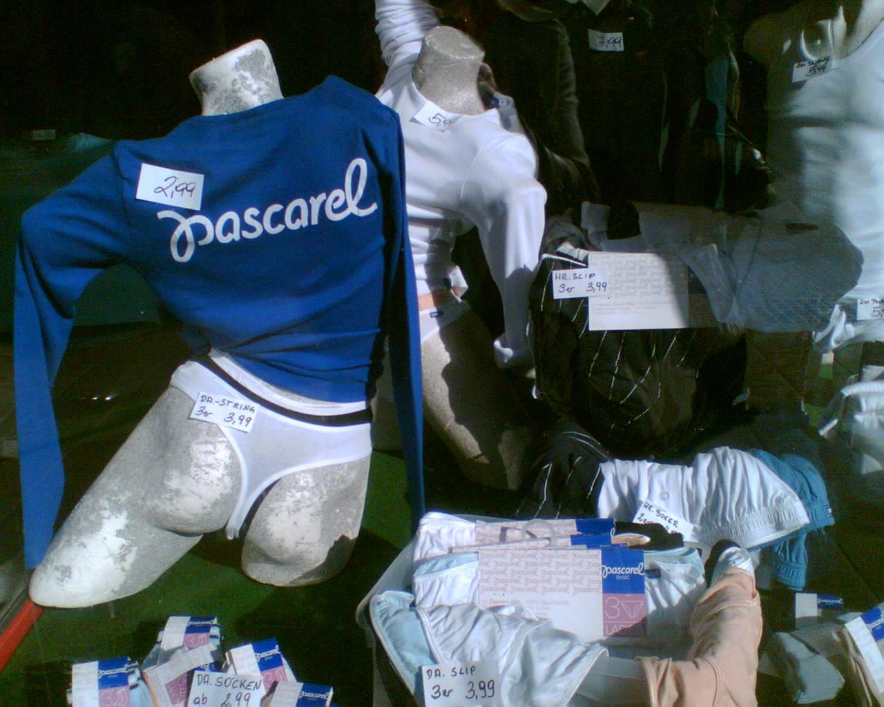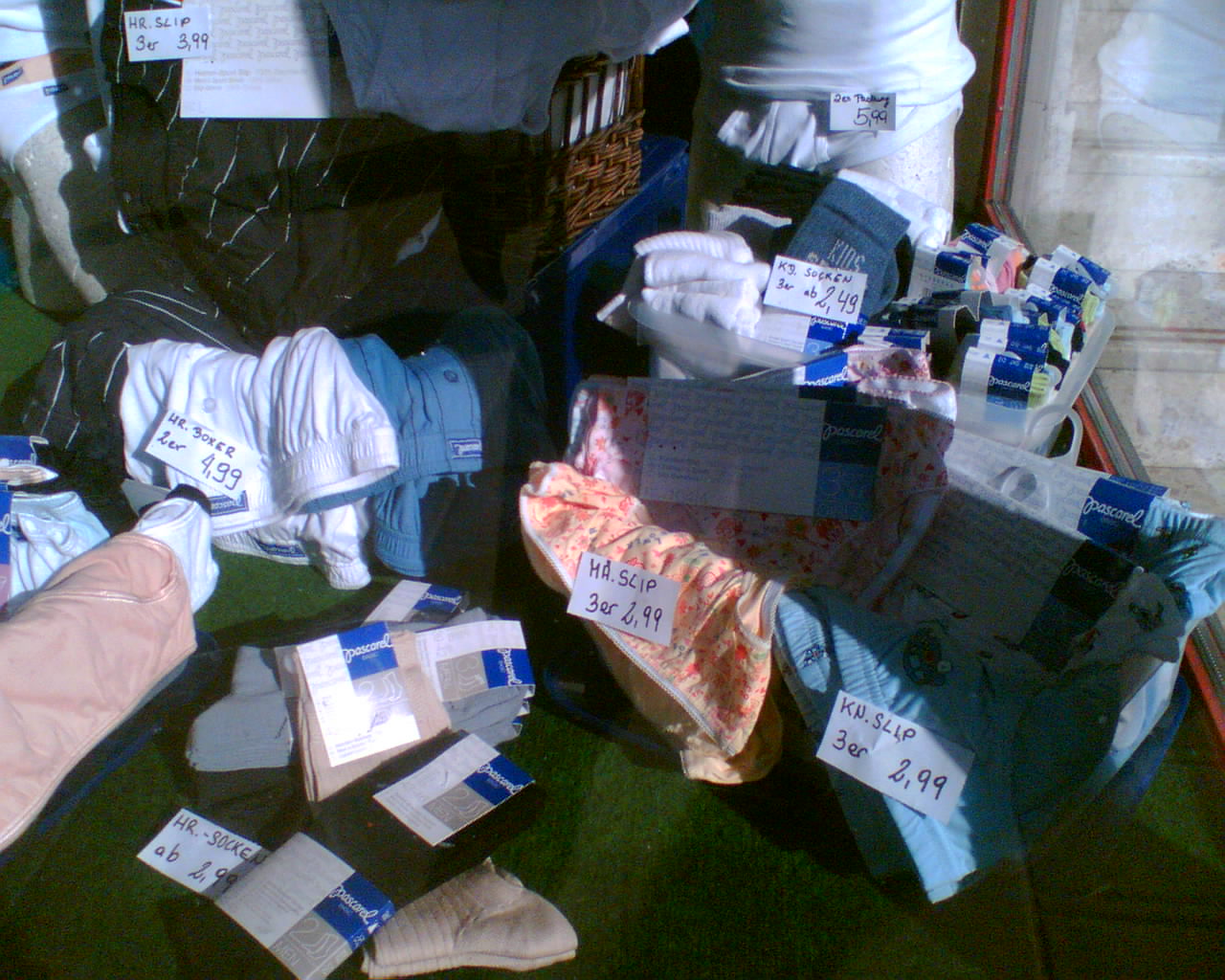 Den Vogel hat jetzt aber die Intersparfiliale in Wien Mitte abgeschossen. Ein krasserer Gegensatz zwischen der in kostbaren Fernsehspots inszenierten neuen Spar-Wäsche namens Pascarel und ihrer Präsentation am Point of Sale ist wohl kaum denkbar.