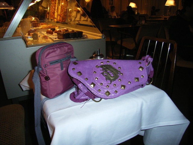 Meine Taschen wiederum sind sehr groß und eigentlich ein Rucksack. Damit ich eben noch den abendlichen Einkauf unterbringe – gerne auch von Bree aus der Serie Punch (1010 Wien, Freyung 3, Palais Harrach). Der Nachteil – du wirst nie das schnell finden, was du grade darin suchst! Immerhin der Rucksack ist wasserfest und A4-Blätter passen auch ohne weiteres hinein. Oder ich nehme die kleine Taschenversion, wenn ich nur Geldbörse, Handy und eine Wasserflasche unterbringen muss (vgl. Foto).