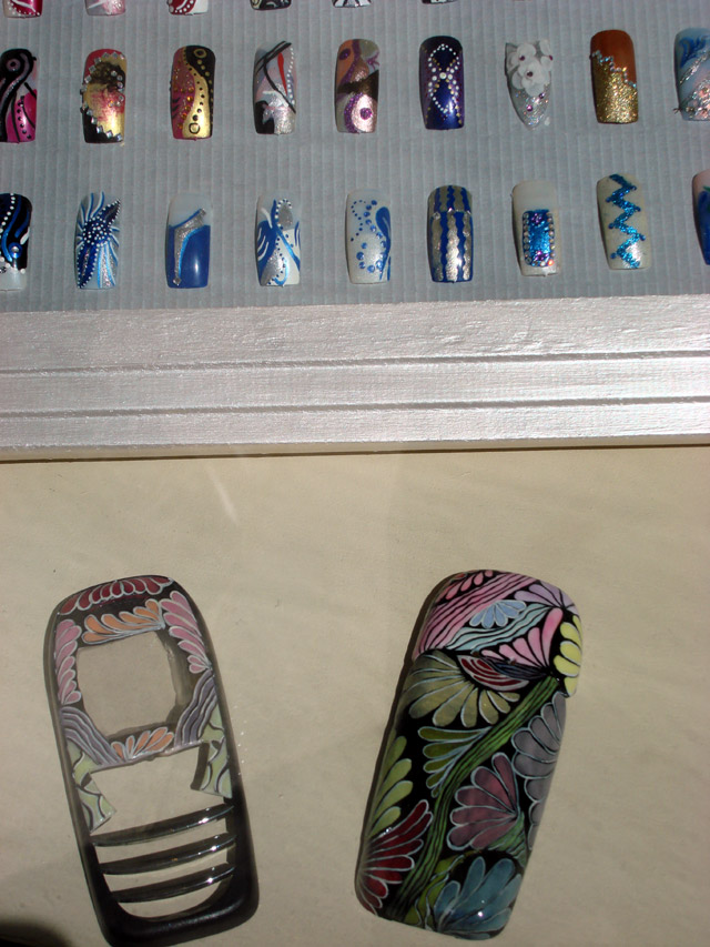 Für mich als Kurzfeilerin und glücklicher Weise mit recht robusten Fingernägeln Ausgestatteter war das Thema Nageldesign schon immer etwas Fernes und Seltsames. Aber echt bizarr wirkte auf mich die erste Entdeckung des heutigen Tages: Acrylnägel im 3D-Design. Praktiziert wird diese „hohe Schule der Maniküre“ (Eigendefinition) auf der Landstraßer Hauptstraße im Studio Creative. Bitte auf die Fotos klicken, zurücklehnen und die reiche Auswahl in ihrer vollen Pracht wirken lassen!