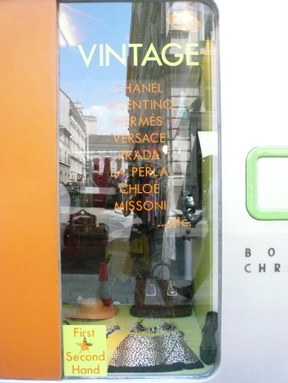 Meine Mittagspause nutzend hab ich endlich das Second-Hand-Shop VINTAGE in der Tegethoffstraße 3 besuchen können. Ein vergeblicher Versuch letzten Samstag nach 15.00 Uhr – Achtung, da schließt es! – hat meine Neugierde noch gesteigert.