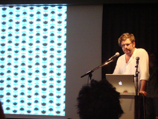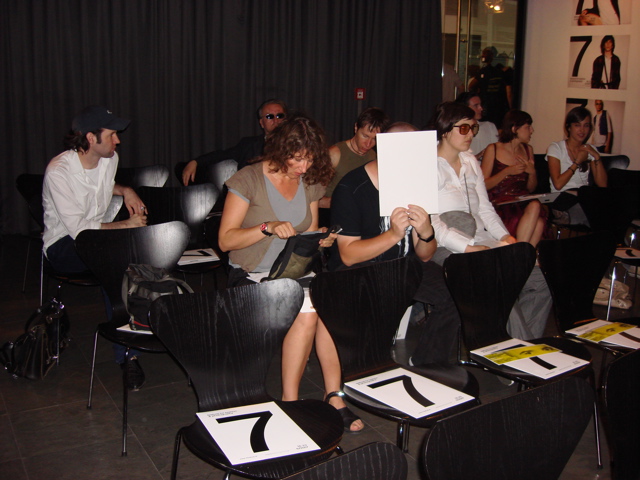 Das war der Lecture-Abend im Project Space am Karlsplatz. In recht intimer Atmospäre schaute man gemeinsam Modevideos, bewunderte die Turmfrisur von Kameliendame in Schwarz Diane Pernet, fragte sich, wo Mark Eley sein Rich-Kid-Gehabe her hat – obwohl ich ja schon sagen muss, dass eine Gumball-Tour als Launchvehikel für eine Männerkollektion ziemlich genial ist -, diskutierte, wieso die Modeförderung so undemokratisch und intransparent ist und genoß ansonsten den klimatisierten Raum.