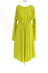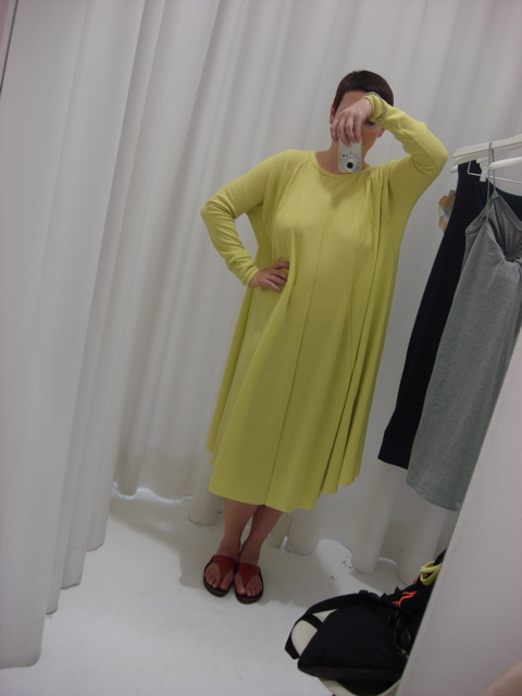 Die tellerartig geschnittenen, angenehm schwer fallenden Wolljersey-Kleider von Awareness & Consciousness haben mich schon vor Ort in ihren Bann gezogen. Vor allem wegen der neuen Farbe Gelb. Schwarz und leuchtendes Ultramarine waren irgendwie absehbar, aber dieses kalte, intensive Gelb ist auch nochmal einen Tick anders als das von Raf Simons in der heurigen Frühling-Sommer-Kollektion für Jil Sander.