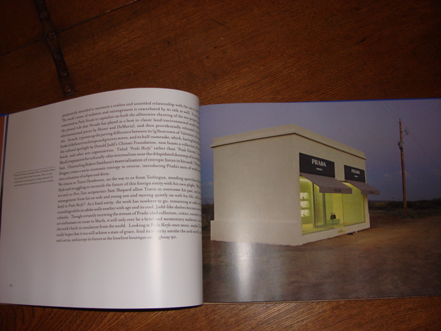Auf der Heimreise mit Abstecher über die Skulptur Projekte Münster, findet in einer temporären Dependance der Buchhandlung König das Büchlein Prada Marfa seinen Weg zu mir.