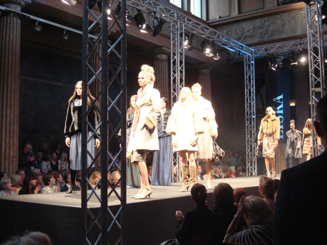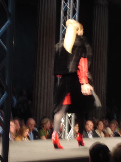 In der Frontrow treffen alle möglichen Varianten an operierten Nasen und Brüsten, mehr oder weniger gelungene Gesichtskorrekturen und Facelifts in einer Häufung aufeinander, die sonst eher selten zu beobachten ist. Und irgendwie passt das ja auch recht gut zusammen mit der Kürschnerei finde ich: Da besteht eine gewisse Verwandtschaft im Zusammenhang von Leiden und der Definition von Schönheit.