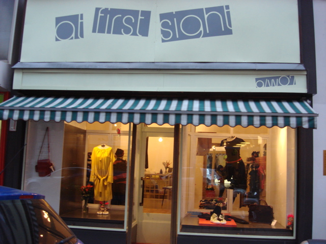 Mehr als einen 2. Blick hat auf jeden Fall der kleine, sympathische Laden at first sight verdient, der sich schön ins Jung-Designer-Viertel im 7. Bezirk um Lindengasse und Kirchengasse einfügt. Vivien Sakura Brandl und Tina Haslinger nennen ihr Geschäft Concept Store, irgendwie schade, dass man meint, eine ebenso inflationäre wie wenig aussagekräftige Bezeichnung zu brauchen. Die beiden bieten zum Teil recht innovative Kleidung und witzige Accessoires aus Tokio, Wien und – für hiesige Verhältnisse noch eher selten – Berlin an. Am spannendsten finde ich die Männersachen von IO sowie die Kleider von Vonwedel und Tiedeken.
