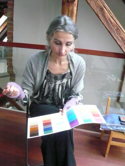 Wer’s wissen will: Ich bin ein Herbsttyp mit den Farben Grün, Braun, Aubergine, Bronze. Auch meine Augenfarbe wird untersucht, die Teintfarbe, die Adern und die Haarfarbe. Ich brauche warme Farben und soll alles Grelle meiden. Das stimmt ganz mit meiner eigenen Erfahrung überein!