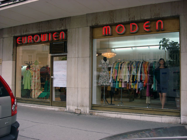 Die allesamt neuen, sprich ungetragenen Hemdblusenkleider, Ensembles, Blusen, Hemden, Hot-Pants, Maxi-, Mini-, Midi-Röcke und Cocktailkleider in häßlichschönen Farbkombinationen und Dessins hat J.J. (Namenskürzel, englisch auszusprechen) aus dem Lager seiner Großmama gerettet. Ihren Laden namens „Eurowien“ am Hohen Markt hat er vom Mief der Jahrzehnte und befreit, das wesentliche Interieur aber erhalten.