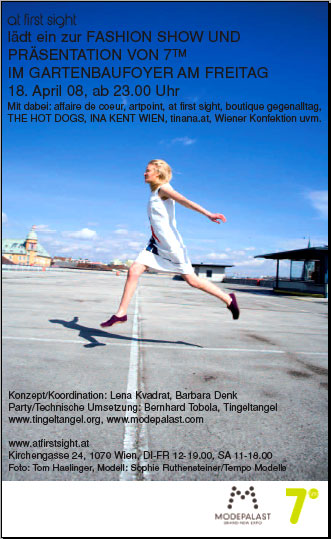 Die Modeszene des 7. Bezirks vernetzt sich. Unter dem Namen 7tm haben sich 26 kleine, feine Läden zusammengefunden, um gemeinsam zu werben. Gelauncht wird am 18.4. mit der 7tm Shop Show bei der Tingeltangel-goes-Modepalast-Party im Gartenbaukino (Party ab 22 Uhr, Modenschau um 23 oder 23.30 Uhr je nach Quelle, ich tippe eher auf später). Jeder Shop schickt 1 Model auf den Laufsteg. Das ist doch mal ein positives Zeichen in einer sonst für ihren Argwohn gegenüber dem Mitbewerb bekannten Branche.