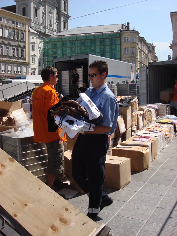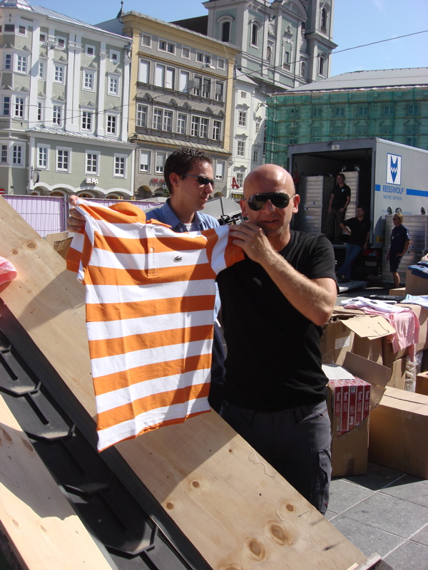 Die Aktion auf dem Linzer Hauptplatz sollte laut Eigendefinition „den Aspekt von Brand Value (Markenwert) und Imitation“ ins Visier nehmen. Ein eher banales Konzept, wie ich finde, aber Initiator Martin Honzik hatte offensichtlich großen Spaß damit.