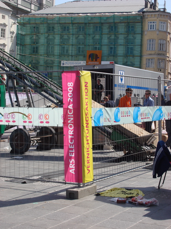 Vernichtungsaktion im Rahmen der Ars Electronica 2008, Fotos: Tschilp