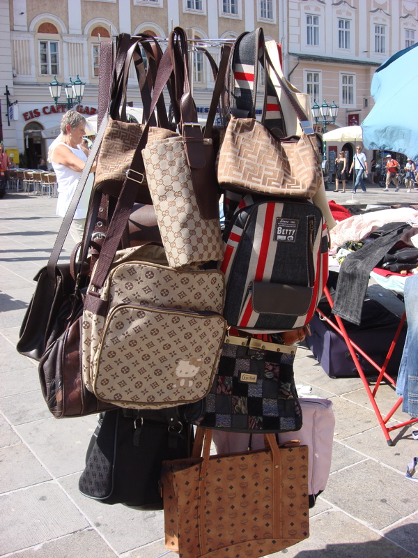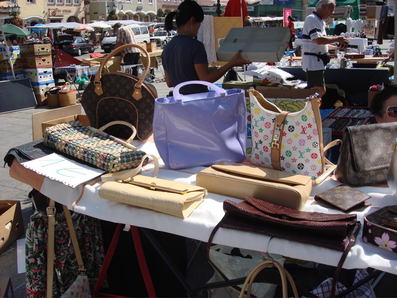 Auf dem Flohmarkt nebenan gab’s dann die „echten“ Fakes zu erstehen. Ein empfehlenswertes Blog zum Thema ist übrigens Counterfeit Chic, dort finden sich auch immer wieder auch etwas intelligentere Konzepte im Spannungsfeld Markenwert und Fake.