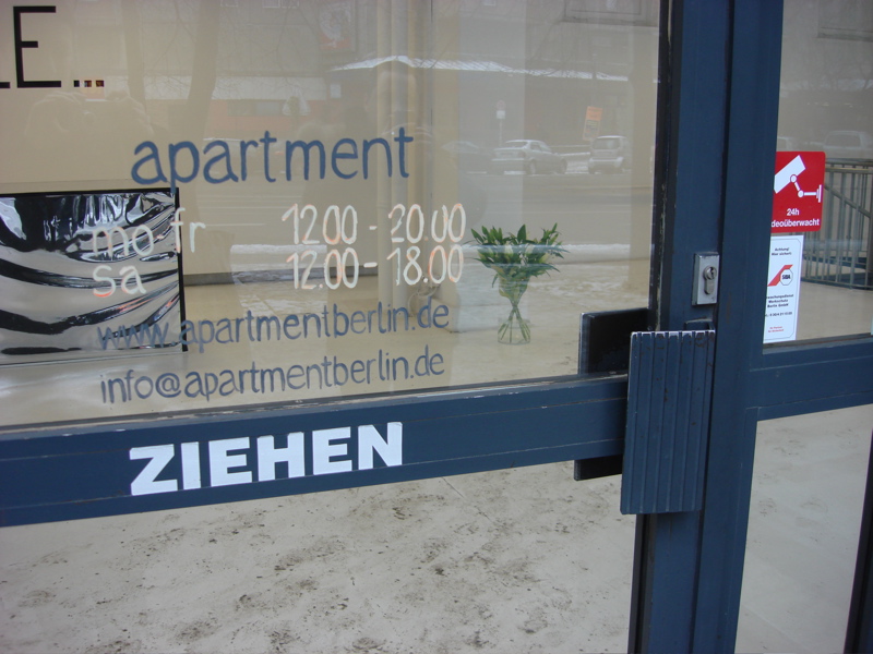 Ein Laden wie Appartment ist in Wien nur schwer vorstellbar. Das weiß getünchte, riesige Gassenlokal steht vollkommen leer. Eine grau lackierte, schmale Wendeltreppe führt langsam nach unten. Der eigentliche Shop befindet sich in dem in Schwarz gehaltenen Keller-Loft, wo die zuvorkommende und dennoch unaufdringliche Bedienung umrahmt von Samtvorhängen und sorgfältig Arrangiertem internationaler Avantgarde-Labels waltet. Ein Beamer projiziert den Blick vom Schaufenster nach draussen per Videokamera nach unten. Ein ziemlich 80-er Jahre-mässiges Minikleid/Oberteil von Pepper & Pistol hat es mir dann angetan.