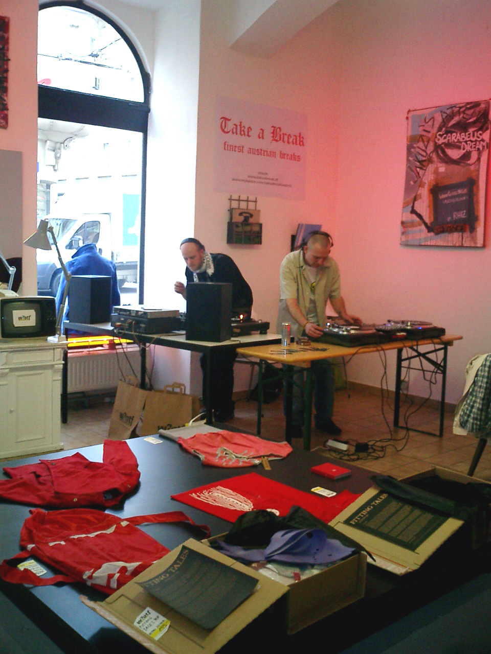 In der Auslage zeigt Evelyn Loschy, die auch anwesend sein wird, ihre Installation “ent.rissenâ?. Sie interpretierte dafür den ReiÃverschluss als Vernetzungsmedium.