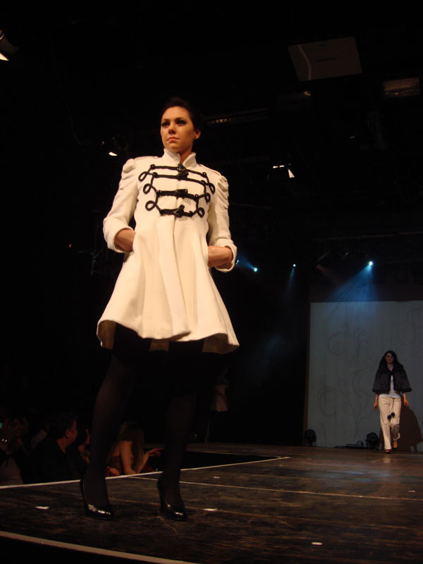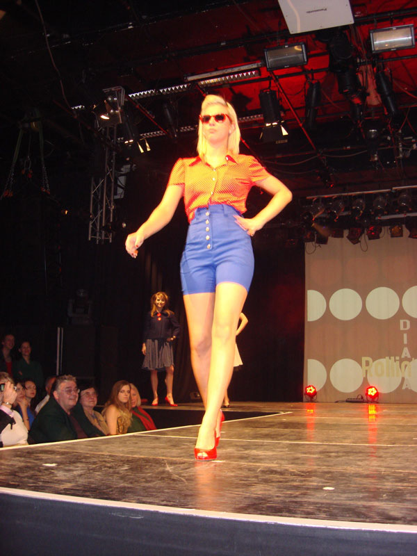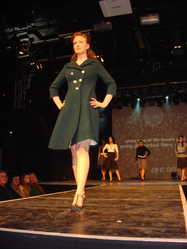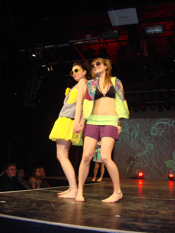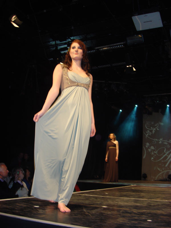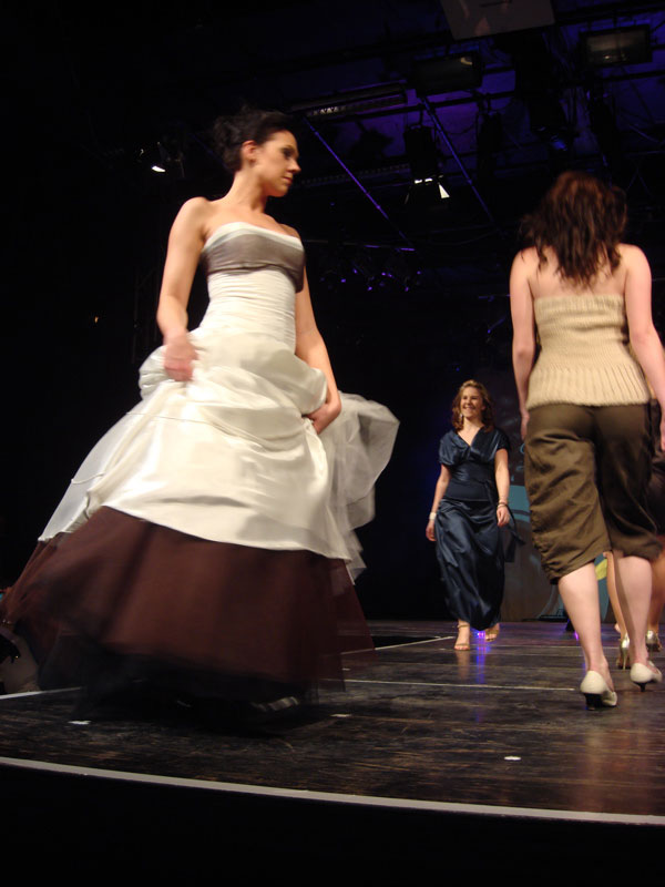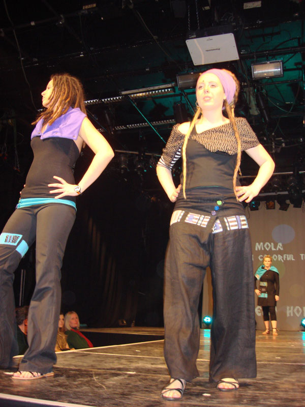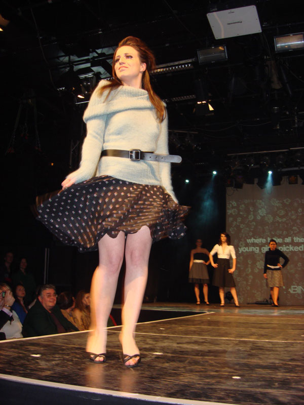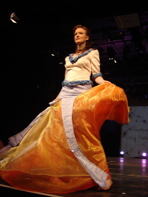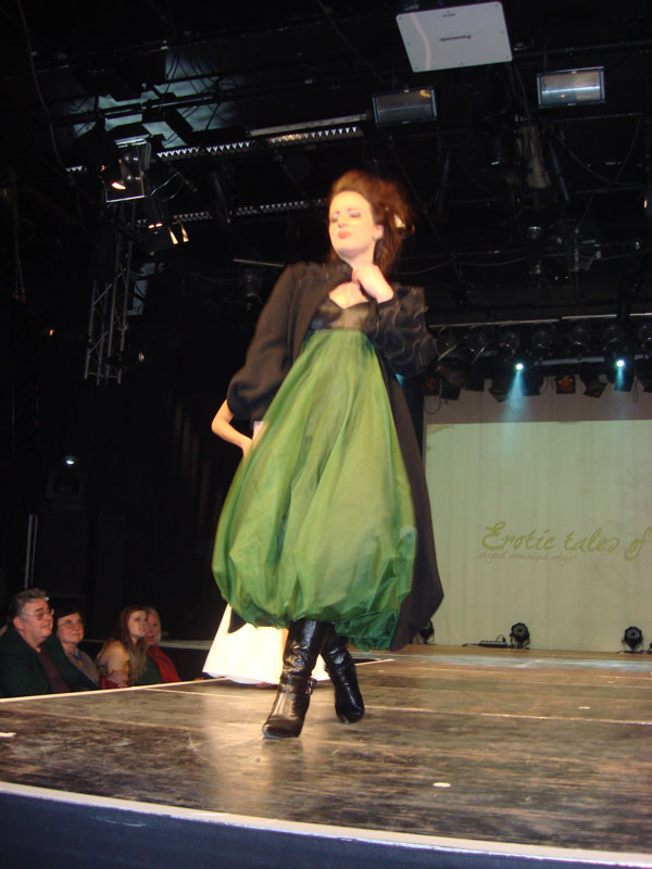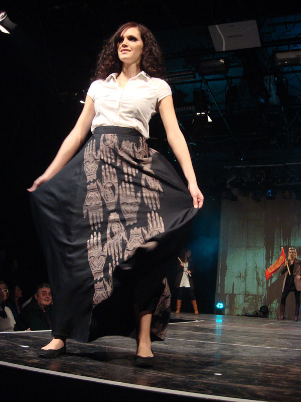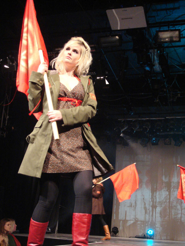 Zu ebenfalls 21 Themen von „Casual Chic“ bis „Fetish“ schickten die Designerinnen ihre Kleinkollektionen auf den Laufsteg. Und die Ladys rockten den bestens gefüllten Großen Saal vom – stilgerecht um eine Stunde verzögerten – Beginn an. The Prodigy’s Firestarter leitete auch musikalisch eine kraftvolle Performance ein. Als Modells liefen aussschließlich Laien, aber wie! Respekt!