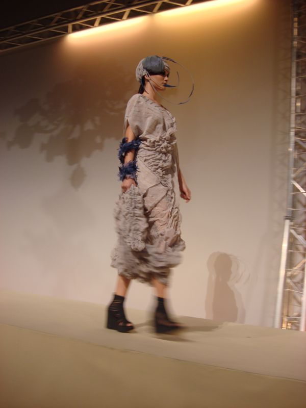 Aber schon davor hatte es einiges Vielversprechendes zu Schwerpunkten wie historischer ländlicher Arbeit, Fairtrade, japanische Stoffe oder Interieurmaterial nebst Arbeiten von StudentInnen des renommierten Bunka College Tokio zu sehen gegeben. Die Diplomkollektionen kann man übrigens von 1. bis 11. Juli im Advanced Minority Artspace begutachten.