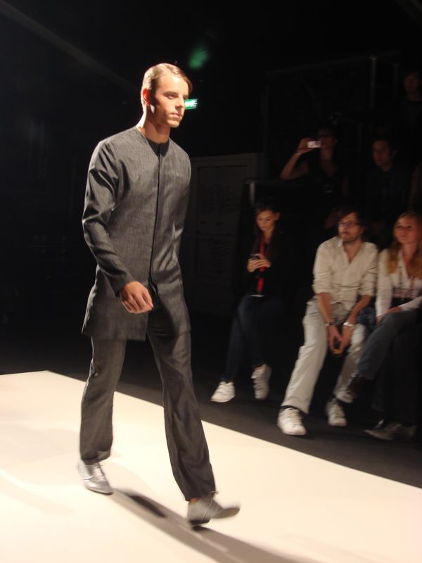 Wer als Shootingstar angekündigt wird, hat’s natürlich nicht ganz einfach. So geschehen bei Kilian Kerner. Die Kollektion des überaus sympathischen Berliners namens Tagebucheinträge wirkte in der hiesigen Präsentation ein bisschen zusammengewürfelt. Es war die letzte der sieben Shows am Freitag mit sichtlich ermatteten Models.