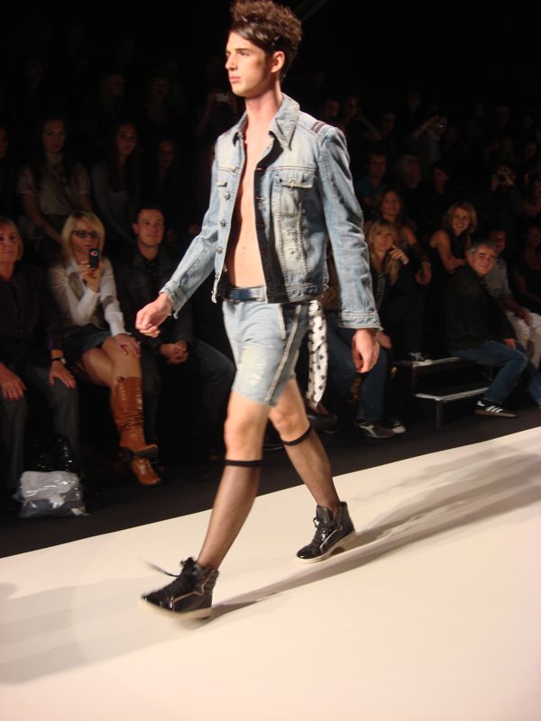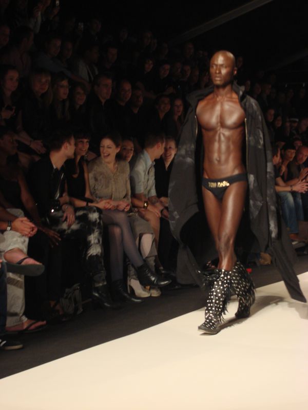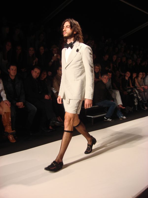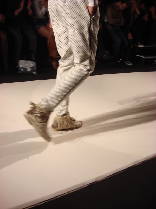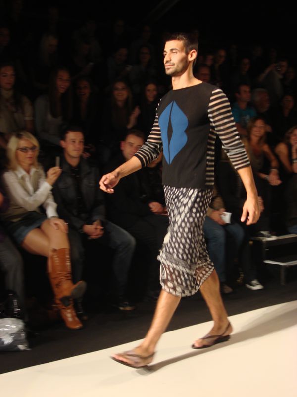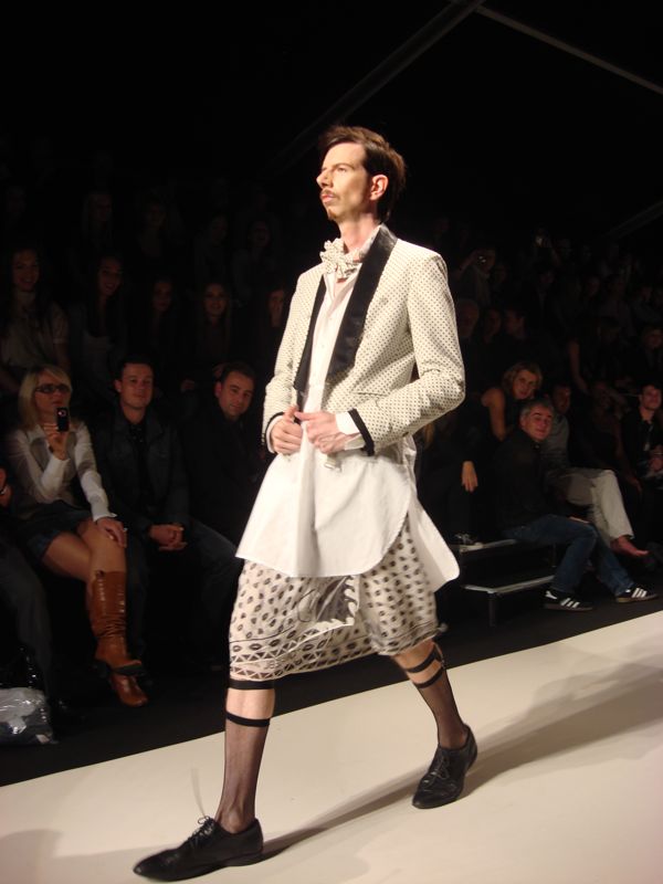 Ein bisschen Dandy, ein bisschen Body language, und vor allem transparente Kniestrümpfe – oder wie wir hierzulande sagen Stutzen, das zeigte das Mailänder Label Tom Rebl am Freitag in seiner gut inszenierten Männermodenschau. Die Models fand ich allerdings fast cooler als die Mode.