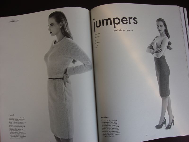 Wir finden hoch elegante Fotos mit viel Schwarz/Weiss, Untersuchungen über wesentliche Bestandteile der Garderobe – der Pullover (und indirekt auch der klassische BH), die Clutch und feinsinnig geschriebene Portraits interessanter Persönlichkeiten – Karla Otto, Melanie Ward, Maureen Paley, das alles im wunderbaren, nobel zurückgenommenen Layout. Die erste „richtige“ Gentlewoman erscheint leider erst nächstes Jahr zur Frühjahr/Sommer Saison. Inzwischen schau ich mir gerne weiterhin die Männer an…