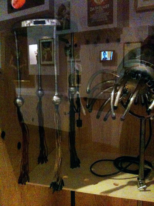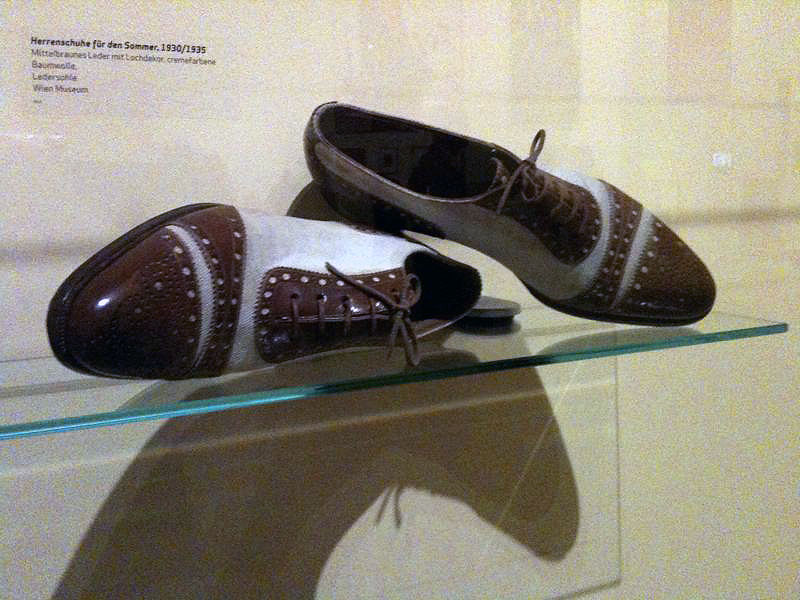 Bilder: Lederhose aus dem Besitz von Marlene Dietrich, Damenmode aus den 20ern und 30ern, elektrische Apparaturen zur Herstellung der beliebten Dauerwellen, Innungsplakate (Schneiderei, Kürschnerei), Herrenschuhe für den Sommer 30er Jahre.