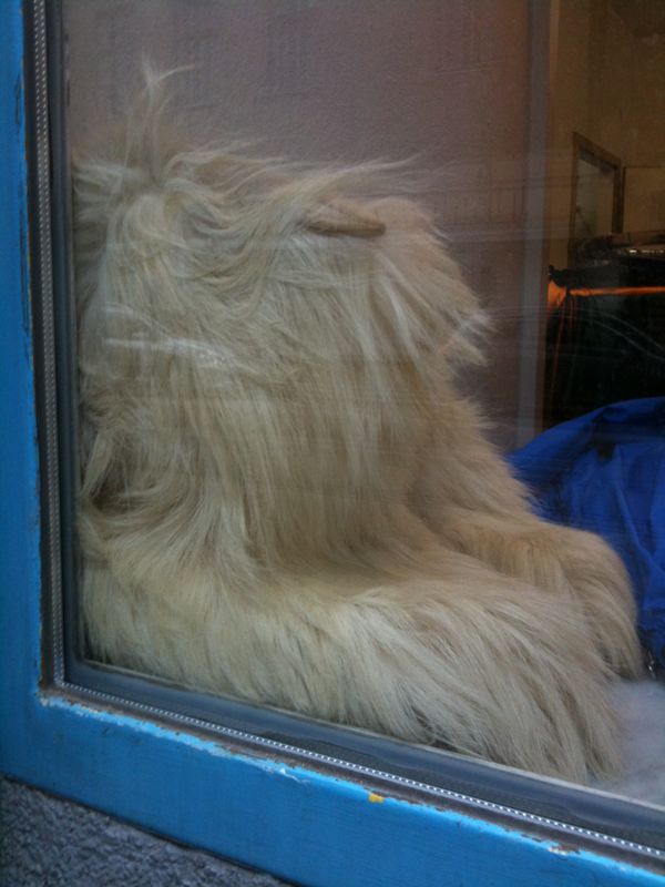 Der Fuchs geht um. Erst tauchte er in Blicas Betrachtung über die bayrische Frauentracht zur Leonhardifahrt auf. Dann findet ParisVienne einen schicken orangen Vintage Fuchsschwanz. Der von person – übrigens ein sehr ernst dreinschauendes präpariertes Tier – wechselte wenig später am Fluc Flohmarkt seine Besitzerin. Und dann komme ich bei Humana vorbei und sehe ein etwas trauriges, ausgedünntes Leonhardi-Teil. Übrigens gibt’s dort auch noch diese hübschen – oder vielleicht doch eher ekligen – Retro-Zottelfell-Moonboots.