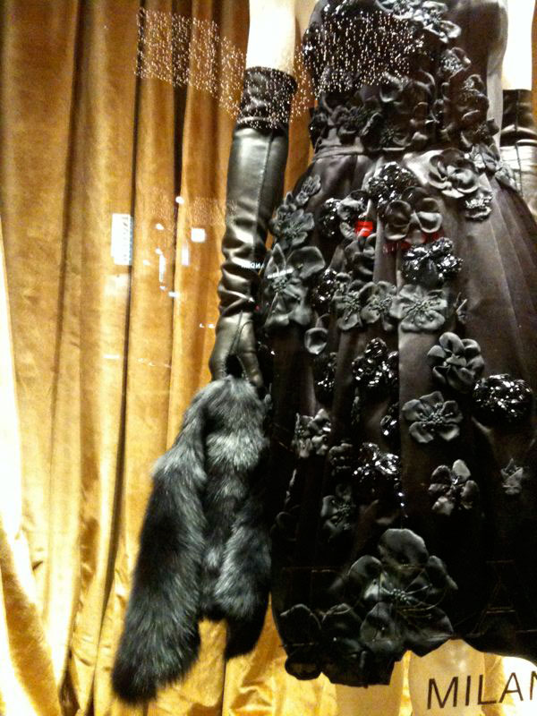 Kleines, schwarzes Partyzeugs im Zara Schaufenster. Nur blöd, dass die an Rodarte (Herbst 08) angelehnten grobmaschigen Leggings am durchschnittlichen Bein wohl ziemlich anders aussehen werden.