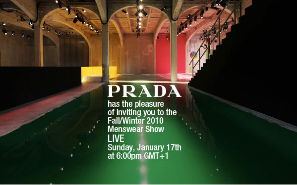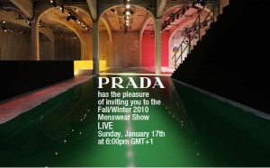 Wieder ein Beispiel, wie Online Medien die Rezeption des Modegeschehens verändern. Prada zeigt die morgige Mailänder Männershow für Herbst/Winter 2010 live im Web. Man darf gespannt sein auf die Serverkapazitäten.