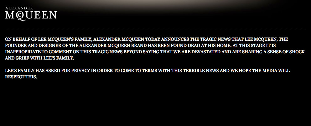 Leider eine erschütternde Nachricht: Der britische Modedesigner Alexander McQueen ist tot.