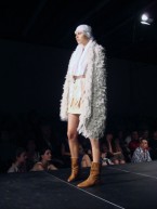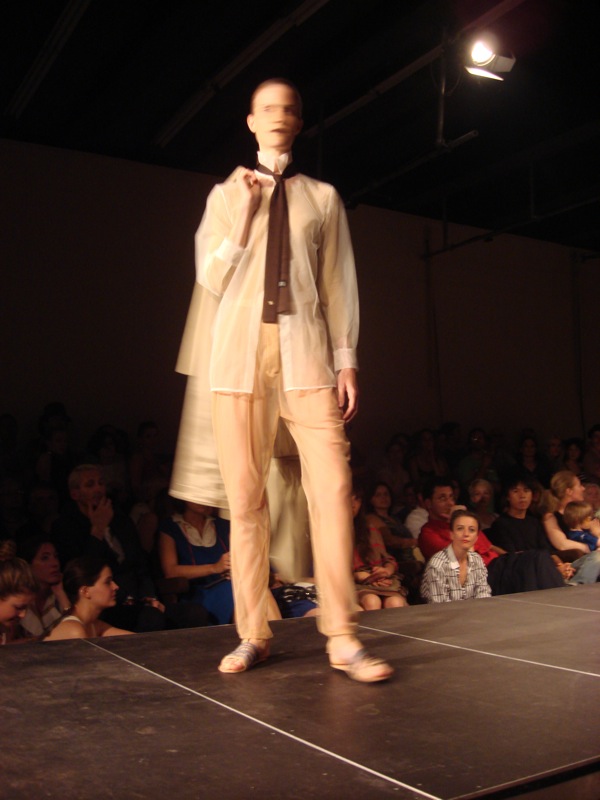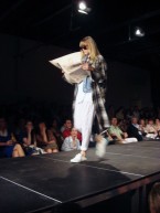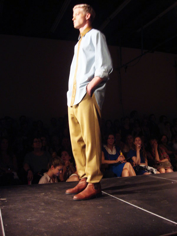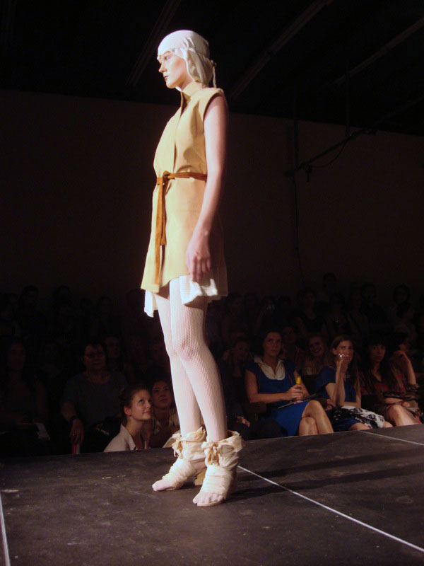 Anstatt hierarchisch mit den Arbeiten der „Kleinen“ zu beginnen und als krönenden Abschluss die „Fertigen“ zu zeigen, stellten Samuel Drira und Sybille Walter (encens Magazine, Paris) einzelne Teile der StudentInnen zu stimmigen Outfits zusammen, sodass man den letztendlich Eindruck erhielt, es handle sich um ein Kollektiv, das an einem gemeinsamen Label arbeitet.