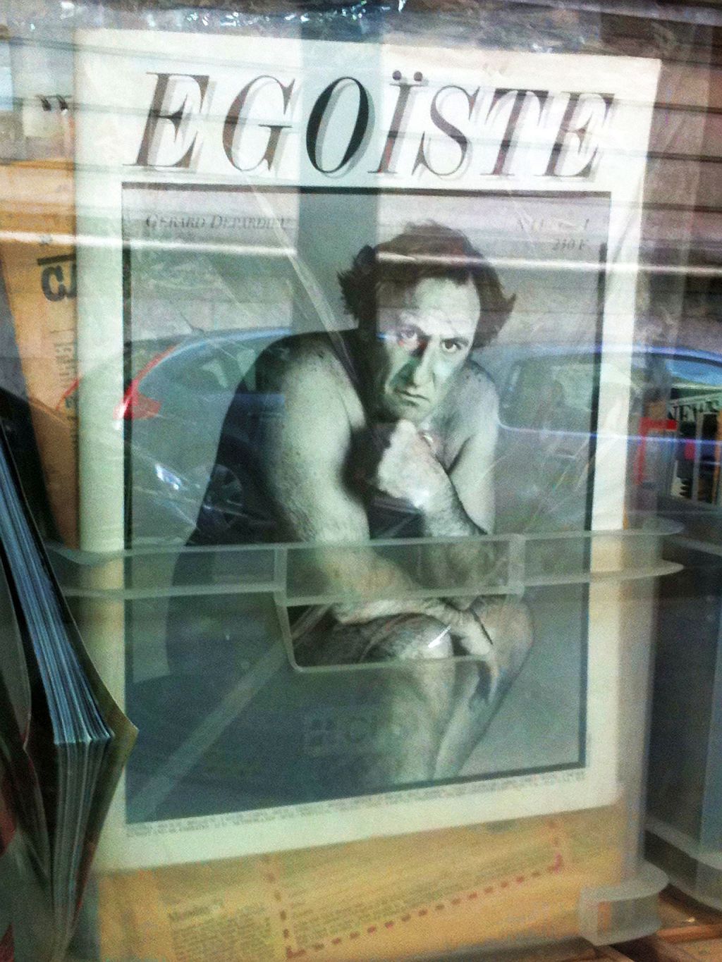 Nomen est Omen. Am Heimweg durch die Rue des Archives blieb mein Blick an diesen schönen Exemplaren hängen: Vogue, Jardin des Modes, Femme, Elle, Marie Claire, die Egoïste Ausgabe mit dem nackigen Gerard Depardieu fotografiert von Richard Avedon am Cover. Der Laden hat leider gerade fermeture annuelle.