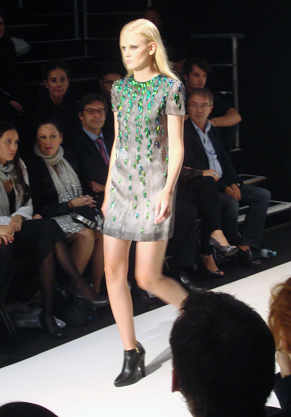 Leute, das sind echte thailändische Käfer, die da goldgrün am Laufsteg schimmern und fast alle Modelle von Surreal Objects in konservierter Form als Schmuck bevölkern!