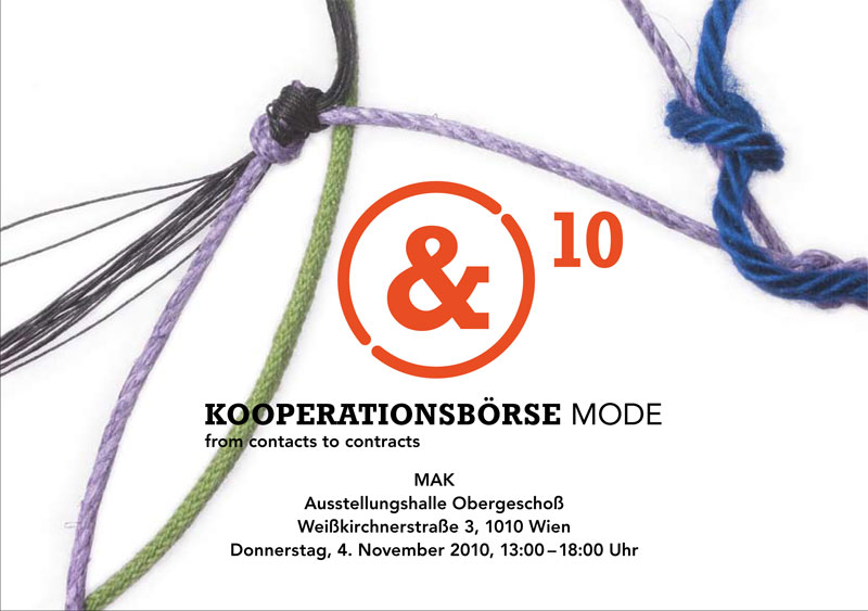 Kommenden Donnerstag findet die von AustrianFashion.Net voriges Jahr initiierte Kooperationsbörse Mode zum zweiten Mal statt. Nach dem Motto „From Contacts to Contracts“ wird im Wiener MAK wieder eine Plattform zur persönlichen Vernetzung von Gewerbetreibenden und Kreativen geboten.