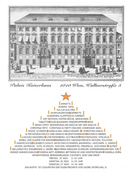 Die Verkaufsausstellung im Palais Kaiserhaus versammelt zum Beispiel Klapptische mit Motivfurnier neben Luxusaccessoires, Spielzeug neben Korngrasbäumchen oder Batistnachthemdchen neben kuscheligem Kaschmir und natürlich Kränze, Lebkuchen, Marmelade, Senf, Hochprozentiges und vieles mehr.