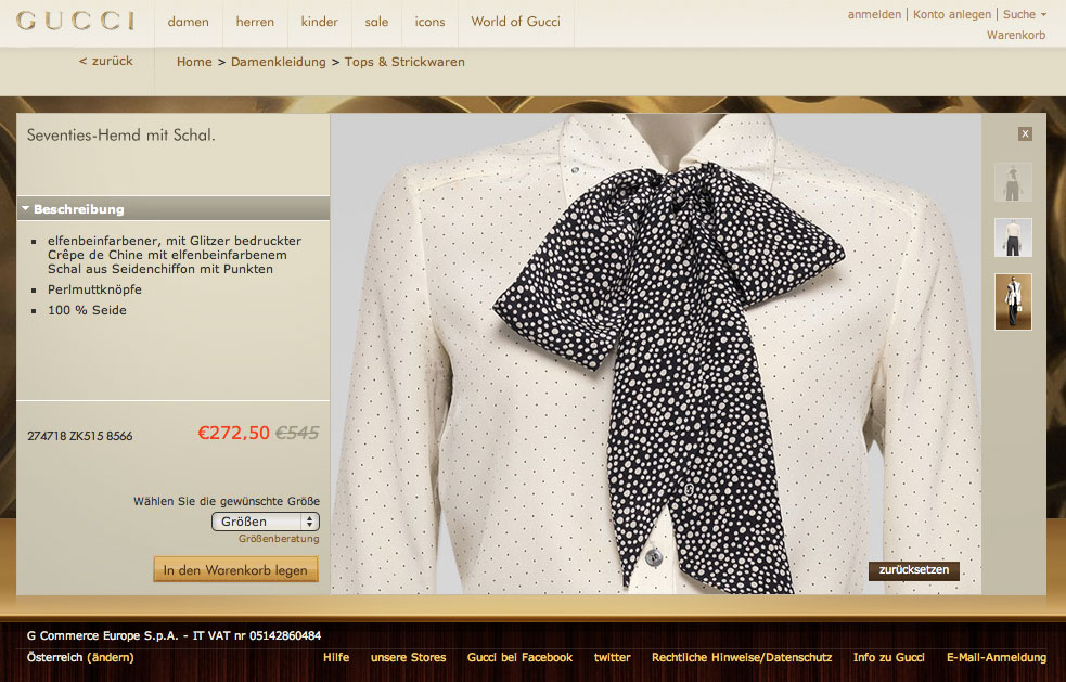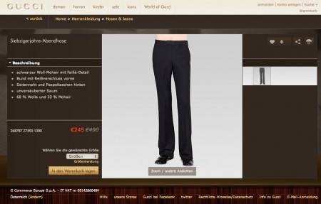 Und so sieht dann auch der heute gestartete Digital-Flagship-Schlussverkauf (Eigendefinition) entsprechend fad aus. Von mangelnder Usability (auf keinen Fall jemals die Back-Funktion im Browser verwenden!) und recht mittelmäßiger Fotoqualität (wer Details genau sehen möchte, ist nicht gut beraten), sowie einem generell altbackenen Look & Feel, der für mich absolut nichts Luxuriöses oder Glamouröses vermittelt, gar nicht zu reden. Aber vielleicht ist das ja genau das, was die Zielgruppe will?