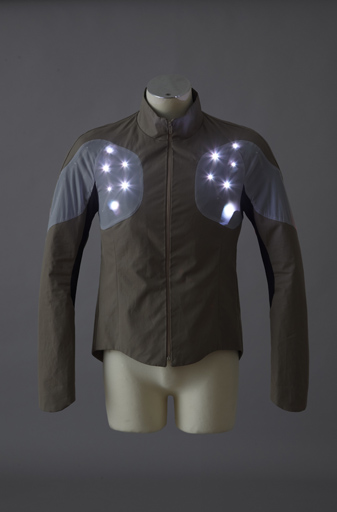 Mit dem cleveren City-Cycling Jacket werden Radfahrer im nächtlichen Straßenverkehr bestimmt nicht übersehen. Die Radler-Jacke ist mit dünnen, leistungsfähigen und elastischen LED-Einsätzen sowie Sensoren ausgestattet, die Bewegung in Leuchtmuster übersetzen. Ein weiteres typisches Langeder-Merkmal ist aber auch der ergonomisch durchdachte wiewohl elegante Schnitt.