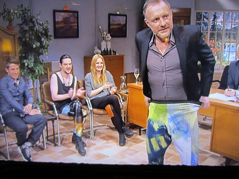 Woohooo und Holodaro! In der ORF Comedy Talkshow Willkommen Österreich feixten zuletzt Stermann und Grissemann mit dem österreichischen Designerduo Mark & Julia. Sehr gelacht wurde als Grissemann eine Art Mischung aus Hausmasta und Dressman gab und sich in bunt gefärbte Leggings von Pebelle schmiss. Skirennläufer Marcel Hirscher steckte er gnädig in einen wesentlich dezenteren Mantel aus dem Hause Mark & Julia. Werbeplatzierungen für Lookk sowie H&M rundeten das Ganze ab.