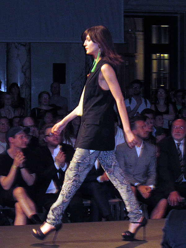 So konnten Nedra Chachoua und Tina Elisabeth Reiter dank BMUKK sowie Mihai Dan Zarug / twenty(2)tooŸ dank des RumĂ€nischen Kulturinstitutes ihre Kollektionen zeigen. Auch wenn etliche GĂ€ste nicht bis zum Ende des an freudvoll Reden schwingenden Menschen am Podium nicht gerade armen, langen Abends warten wollten und dann Irina Lazareanu, die fĂŒr twenty(2)tooŸ zweimal ĂŒber den Catwalk lief, verpassten.