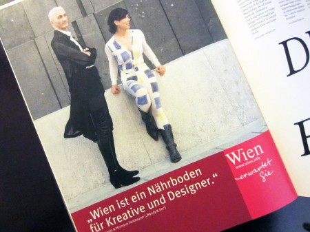 Berlin und Wien gelten als verwandte Seelen, dennoch staunte ich nicht schlecht, als ich im selben Heft auf Seite 10 unter dem Titel „Berlin Fashion Council“ einen Text fand, bei dem mir so Vieles bekannt vorkam. Es geht dabei um die Lage Berlins als Modestadt. Tausche den Namen Berlin mit Wien und du hast recht treffende Aussagen über die hiesige Situation. Da heißt es etwa: