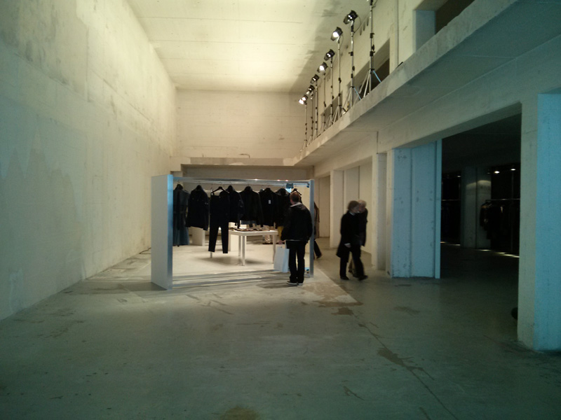 Quasi ums Eck gewährt Kostas Murkudis, seit kurzem Creative Director beim deutschen Jeans-Label Closed Einblicke in seine Menswear Arbeit: Unter dem Titel „Skywalk“ zeigt Carsten Nicolai eine Videoarbeit zum Thema Wolken während nebenan die Murkudis/Closed Capsule Collection mit einem Aviator-Wende-Trench als Glanzstück aufwartet.