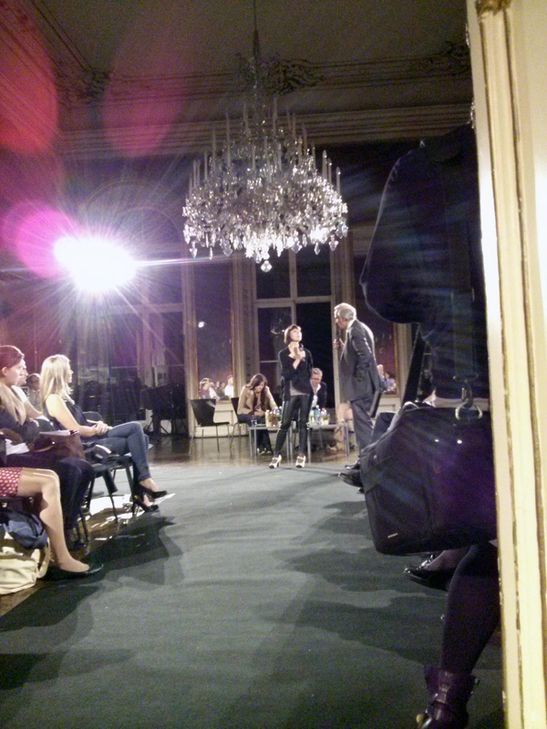 Und da die französische eine etwas intellektuellere Kulturnation ist – hierzulande erfreuen wir uns modemäßig ja am liebsten am reinen Spektakel – gab es vorab auch Programm: Cloed Baumgartner (Milch), Claudia Sprinz (Greenpeace), Julia Scharl (wandelbar) und Daniel Kalt (Die Presse) unterhielten sich über Mode und Nachhaltigkeit. Was eigentlich ein brennendes Thema sein könnte angesichts der Zustände unter denen Kleidung – und zwar durchaus auch im Luxus-Segment – erzeugt wird, verlief als nette Plauderei.
