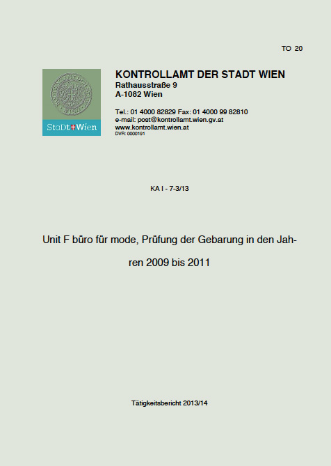 Nun haben wir es also Schwarz auf Weiss. Unit F ist als Förderplattform für Mode letztendlich gescheitert. Was für Viele innerhalb der österreichischen Modeszene nicht wirklich überraschend kommt, bestätigt nun das Kontrollamt der Stadt Wien, das die Gebarung des Vereins Unit F büro für mode in den drei Jahren 2009-2011 untersucht hat.