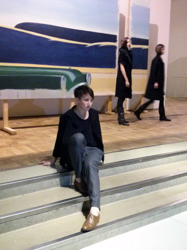 Eingebettet in vier Filmsets, die derzeit in der Ausstellung zum Film von Gustav Deutsch und Hanna Schimek im Wiener Künstlerhaus zu sehen sind, funktionierte das Ganze noch einmal wie ein zweiter Film, wenn die Modelle sich achtsam und bewusst in verschiedene Posen brachten, von Versatzstück zu Versatzstück bewegten, gelassen und sicher die exakt choreografierten Szenen formten und den Blick in die Ferne, in eine nächste Ebene öffneten. Großartig.