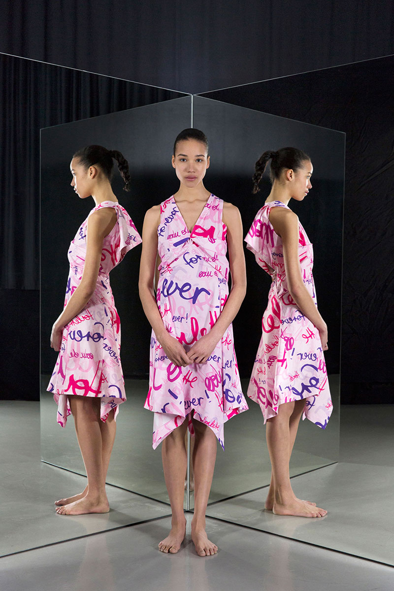 Anlässlich seiner Berufung nach Wien sprach Bernhard Wilhelm vor fünf Jahren noch von einer Show, „auf der nicht zwangsweise alle Studenten ihre Kollektionen zeigen“. Und startete wenig später gleich einmal mit recht interessanten, zwanglosen Präsentationen an verschiedenen Galerie-Locations der Stadt, mehr Installation und Performance denn Laufsteg.